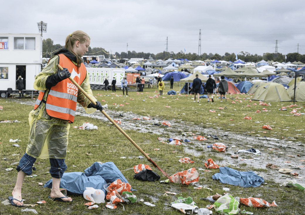 Festivalpersonale arbejder med service og gæstehåndtering på Roskilde Festival
